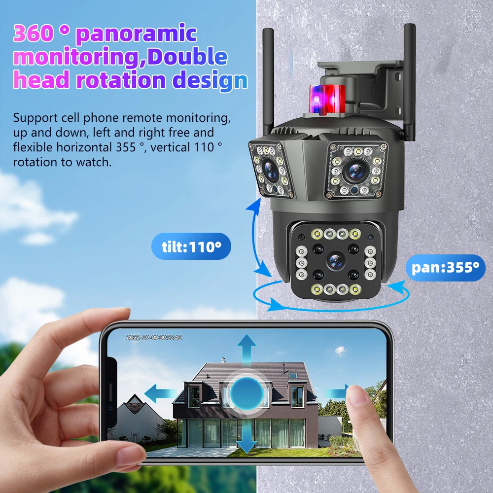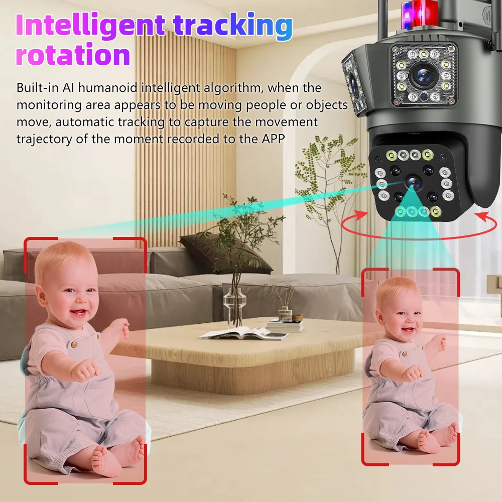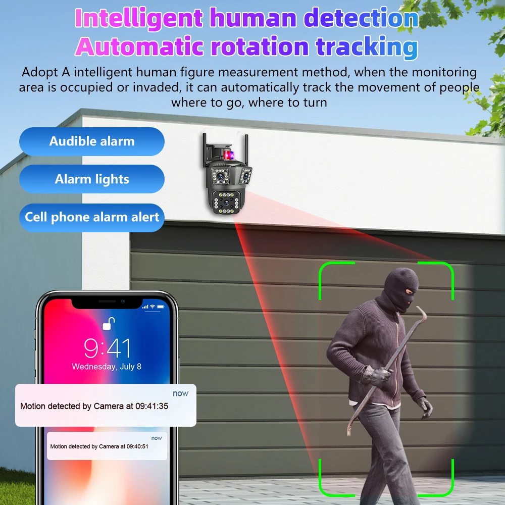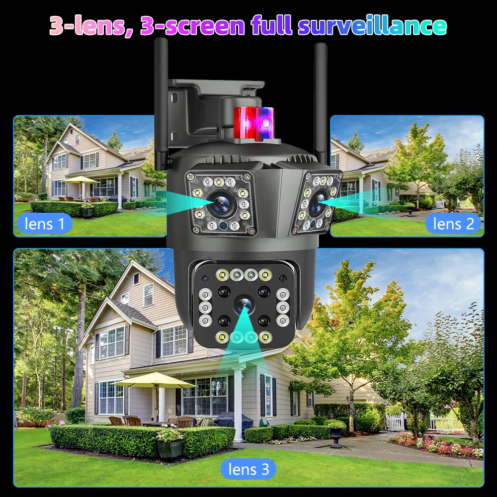 9MP 3Lensens Outdoor Camera 10X Zoom Wireless Security Surveillance Camera AI Human Tracking Audio HD Night Color Camera